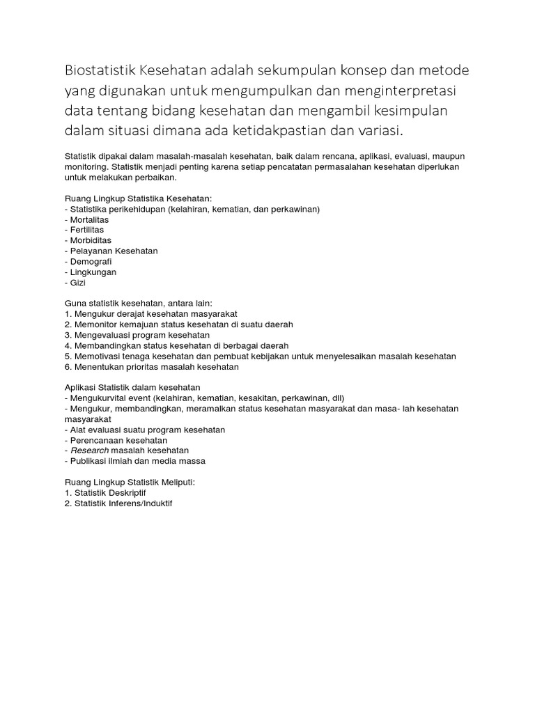 Ruang Lingkup Statistika from imgv2-2-f.scribdassets.com Di dalam epidemiologi terdapat tiga tipe pokok pendekatan atau metode yaitu: Statistika teoritis yang lebih berorientasi kepada pemahaman model statistika deskriptif berkaitan dengan penerapan metode statistik mengenai pengumpulan, pengolahan, dan penyajian suatu gugus data. Epidemiologi adalah ilmu yang berfokus pada studi pola kesehatan dan penyakit serta faktor yang berkaitan pada tingkat populasi. Perbedaan statistik deskriptif dan statistik inferensia. Statistika teoritis yang lebih berorientasi kepada pemahaman model · statistika deskriptif berkaitan dengan penerapan metode statistik mengenai pengumpulan, pengolahan, dan penyajian suatu. Dengan cara melakukan estimasi, tes hipotesis dan prediksi terhadap parameter populasi. Penelitian sebagai kata padanannya adalah research dalam bahasa inggris (re berarti kembali,dan search berarti mencari) dengan demikian research berarti mencari kembali. Pengertian & ruang lingkup statistik by winda nawangasari 6896 views.